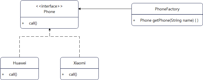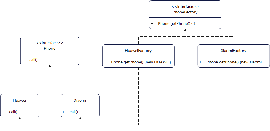 实际上工厂方法模式也很好理解,就拿“手机Phone”这个产品举例,手机是一个抽象产品,小米手机、华为手机、苹果手机是具体的产品实现,而不同品牌的手机在各自的生产厂家生产。